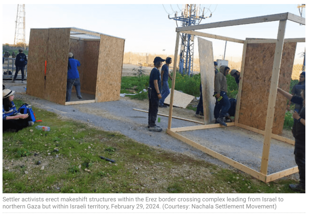 Andere Siedler versuchten auf israelischem Gebiet innerhalb des Erez-Komplexes provisorischen Gebäude aus Holz und Wellplatten aufzustellen.