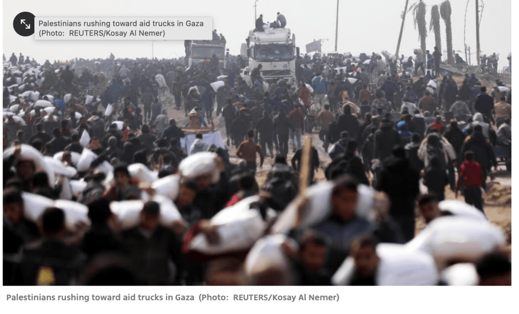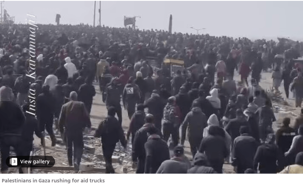 IDF-Pressesprecher Daniel Hagari fasst den Verlauf des Dramas zusammen. Am frühen Morgen des gestrigen Tages hat die IDF einen Konvoi von 38 LKWs mit Hilfsgütern für den nördlichen Gazastreifen begleitet. Gleiche Aktionen waren in den vier vorhergegangenen Nächten ohne Probleme durchgeführt worden. Der Konvoi hatte die Sicherheitskontrollen in Kerem Shalom durchlaufen und war anschliessend über Rafah in den Gazastreifen hineingefahren. Um 4:30 fuhren sie entlang der Küstenstrasse in Richtung Norden. Beim Durchqueren des humanitären Korridors wurde dieser von der IDF mit Panzern und Drohnen gesichert, um zu verhindern, dass es schon dort zu Plünderungen kam und der Konvoi sein Ziel auch erreichen konnte.