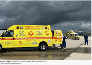 Bei einem Beschuss mit Panzer-Abwehr-Raketen sind am Vormittag in der nordisraelischen Ortschaft Margaliot neun Thai-Arbeiter verletzt und ein weiterer getötet worden. Zwei der Verletzten befinden sich in lebensbedrohlichem Zustand. Kurz nach diesem Vorfall warnten schon wieder die Sirenen vor anfliegenden Drohnen. Die IDF zerstörte in gezielten Reaktionen nicht nur die Abschussrampe, von der aus der tödliche Beschuss gekommen war, sondern auch zwei grosse Hisbollah Infrastrukturen.