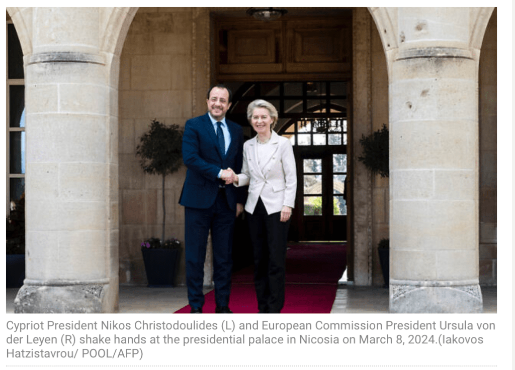 EU-Präsidentin Ursula von der Leyen kam gestern Abend nach Larnaca um die für die Verschiffung der Hilfslieferungen notwendigen Infrastrukturen zu besuchen. Mit der Beteiligung Zyperns ist erstmals auch ein EU-Land an den Bemühungen für die Hilfslieferungen unmittelbar beteiligt. Van der Leyen kündigte an, dass die erste Lieferung nach Gaza via Zypern bereits heute erfolgt. Diese erste Testabfertigung umfasst Lebensmittel von diversen Spendern und wird von den VAE unterstützt.