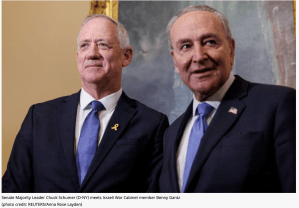 Chuck Schumer, Mehrheitsführer im US-Senat, hat Netanyahu als einen von vier Haupthindernissen bezeichnet, um einen langanhaltenden Frieden in Israel zu erreichen. In einer Rede vor dem Senat forderte er Israel dringend auf, Neuwahlen durchzuführen und Netanyahu als PM zu ersetzen. Die drei weiteren Hindernisse benannte er als: Die Hamas und ihre Unterstützer, Israels rechtsradikale Regierung und den Präsidenten der Palästinensischen Autonomiebehörde Mahmoud Abbas. «Das sind die vier Hindernisse für den Frieden. Und wenn es uns nicht gelingt, sie zu überwinden, werden Israel, das Westjordanland und Gaza in der gleichen gewalttätigen Situation gefangen sein, die sie in den letzten 75 Jahren erlebt hat.» Und er fuhr fort: « Ich kenne Netanyahu seit vielen Jahren. Ich denke, dass die Sicherheit Israels für ihn immer höchste Priorität hatte. Ich glaube jedoch auch, dass Premierminister Netanjahu seinen Weg verloren hat, indem er zuliess, dass sein politisches Überleben Vorrang vor den besten Interessen Israels hat.» Chuck Schumwe, yishar koach!