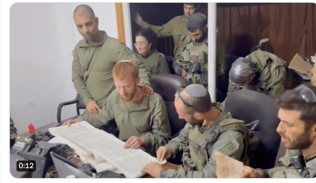 Noch einmal Purim: IDF-Soldaten, die derzeit im Shifa-Spital operieren, lesen zu Ehren des heutigen Purim-Festes die Megillat Esther. Umgeben von seinen Kameraden liest ein Soldat den uralten Text, der die Rettung des Jüdischen Volkes in Persien im 5. Jahrhundert BCE vor einem Genozid beschreibt. Esther, eine jüdische Waise, wird von Mordechai, ihrem älteren Cousin aufgezogen. Nachdem König Ahasveros seine erste Frau Waschti verstiess, wurde Esther zu dessen zweiter Frau erwählt. Mordechai, ein Beamter am Hofe des Königs riet ihr, ihre jüdische Identität zu verschweigen. Haman, der höchste Beamte im Staat, plant einen Genozid an den Juden, nur weil sie seiner Meinung nach nicht kompatibel zum persischen Volk sind. Esther erfährt von Mordechai von dem infamen Plan und teilt ihn unter Lebensgefahr dem König mit. Haman wird daraufhin gerichtet und den Juden wird das Recht eingeräumt, am 13. Adar um ihr Leben zu kämpfen. Mordechai steht an diesem Tag an der Spitze der Juden, denen es gelingt, die Männer aus dem Umfeld von Haman zu töten. Frauen und Kinder werden verschont und auch das Vermögen der Getöteten wird nicht angetastet. Einer der Soldaten hat sich eine ‘rote Nase’ aufgesteckt, wohl um zumindest die traditionelle Verkleidung an diesem Tag anzudeuten!
