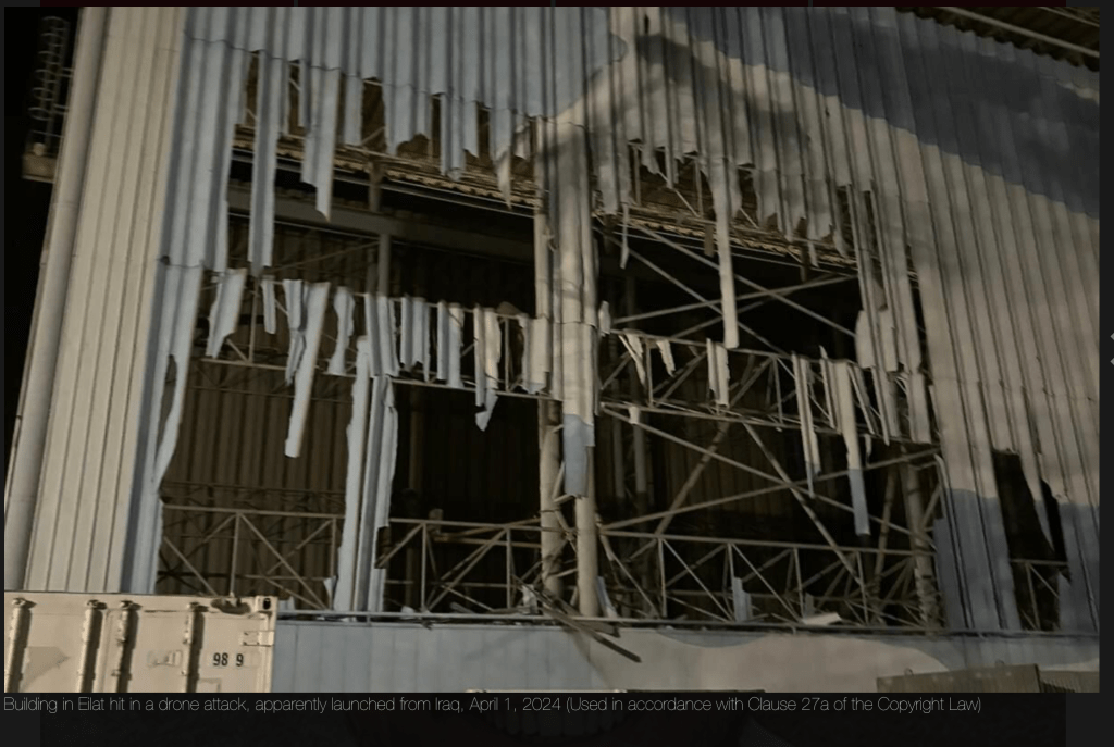 Eine möglicherweise aus dem Irak stammende Drohne hat heute Vormittag ein Gebäude im Hafen von Eilat getroffen und dort mittelschweren Schaden angerichtet. Welches Gebäude getroffen wurde, wurde zunächst nicht bekannt gegeben. Die vom Iran unterstützte Gruppe ‘Islamischer Widerstand im Irak’, die zusammen mit paramilitärischen Gruppen arbeitet, hatte mitgeteilt, dass sie «ein lebenswichtiges Ziel in Israel mit entsprechenden Waffen» angegriffen hätte. In Eilat wurde Drohnenalarm ausgelöst, es wurde von einer kurz darauf erfolgten lauten Explosion berichtet. Vorgestern wurde von Kampfjets eine aus Richtung Syrien einfliegende Drohne abgefangen. Die IDF gab im Laufe des Vormittags bekannt, dass das beschädigte Gebäude Teil der in Eilat stationierten Marine-Basis war.