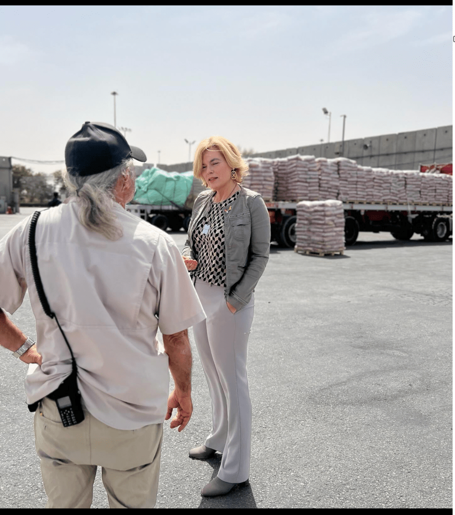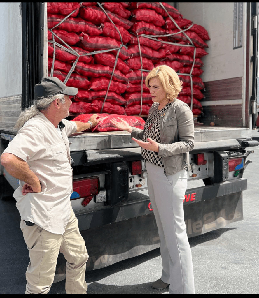 Die zweite gute Nachricht: Julia Klöckner ist ehemalige Bundesministerin für Landwirtschaft und Ernährung im Kabinett Merkel, ehemalige stv. CDU-Bundesvorsitzende und seit Dezember 2021 wirtschaftspolitische Sprecherin der CDU/CSU-Bundestagsfraktion. Sie war Ende März für einige Tage in Israel und besuchte dort einen Warenübergang.