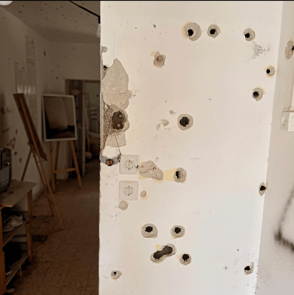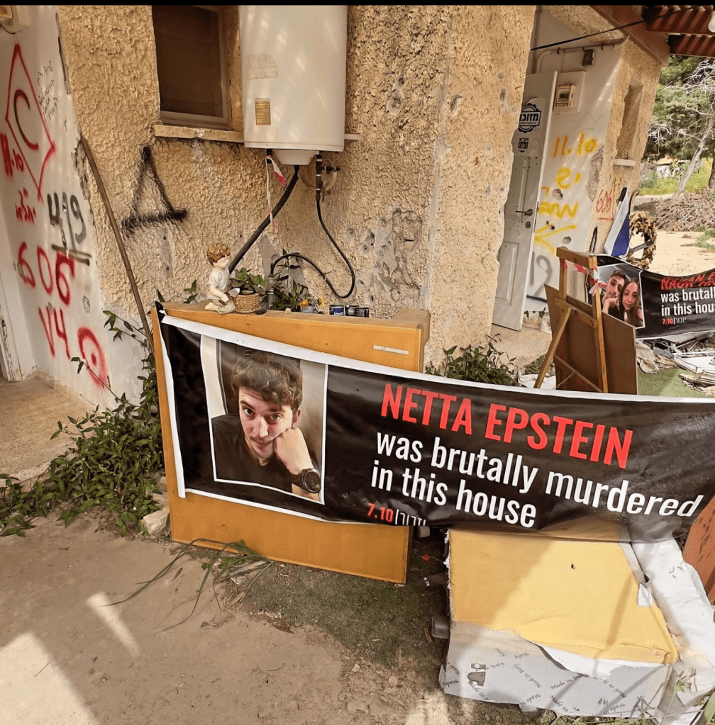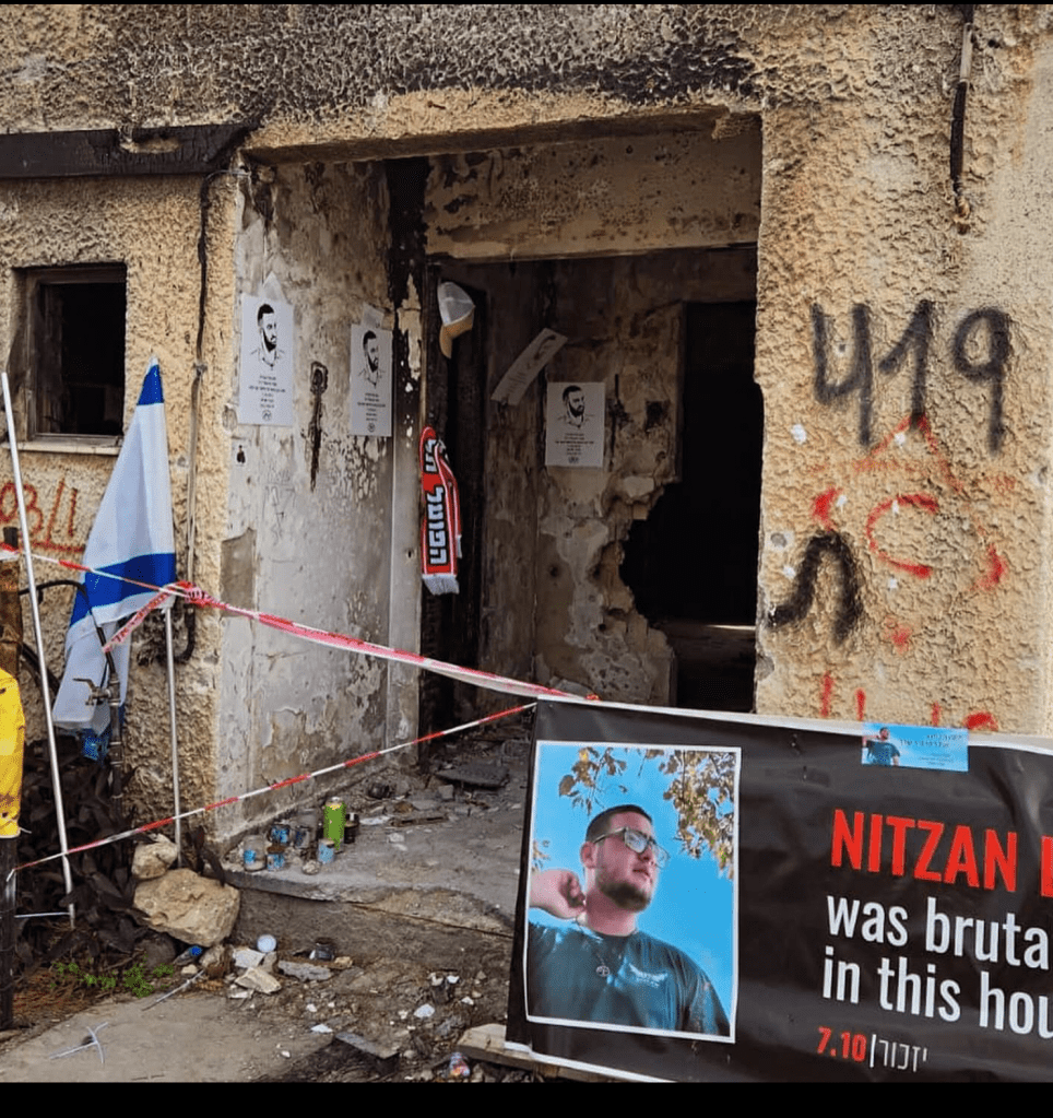 64 Menschen im Kibbuz sind in den frühen Morgenstunden von den Terror-Hamas getötet worden, viele verbrannten noch lebendig in ihren Häusern, 18 Menschen wurden aus dem Kibbuz entführt. Und selbst nach dem Massaker positionierten die Terroristen noch in den Kühlschränken, hinter Türen und unter Leichen Handgranaten, damit zur Hilfe Eilende mit in den Tod gerissen würden. Unfassbar.