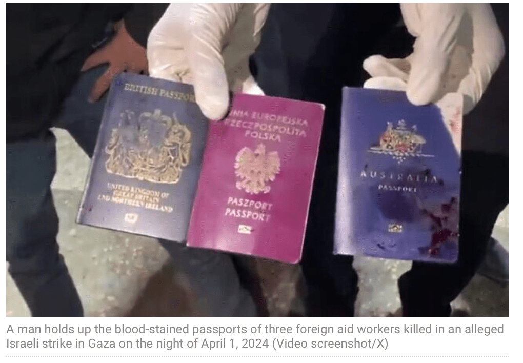Die sieben Mitarbeiter, die bei dem tragischen Vorfall ihr Leben verloren, sind Bürger von Polen, Australien, Grossbritannien und den USA. Betroffen sind auch zwei palästinensische Fahrer Das polnische Aussenministerium spricht nicht nur den betroffenen Familien ihr Beileid aus, sondern «protestiert gegen die Missachtung des humanitären Völkerrechts und den Schutz der Zivilbevölkerung, einschliesslich der humanitären Helfer.»
