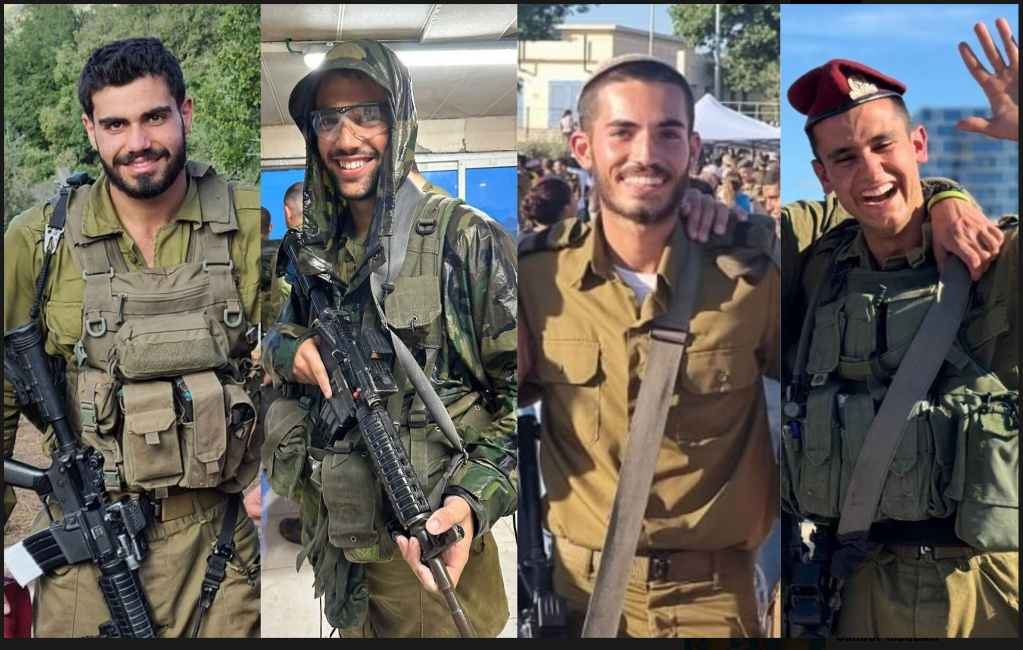 Leider muss die IDF erneut den Tod von vier Soldaten bekannt geben. Cpt. Ido Baruch, 21, Sgt. Amitai Even Shoshan, 20, Sgt. Ilai Zair, 20, und Sgt. Reef Harush, 20, s’’l, starben am Samstag bei einem Kampf im südlichen Gazastreifen. Sie wurden von Hamas-Schützen angegriffen, die vor ihnen aus einem Tunnelschacht in einem zerstörten Gebäude auftauchten und das Feuer auf die Patrouille eröffneten. Anschliessend konnten sie wieder zurück in den Tunnel fliegen. Soldaten, die sie verfolgen wollten, entdeckten, dass der Fluchtweg vermint war, und zogen sich zurück.
