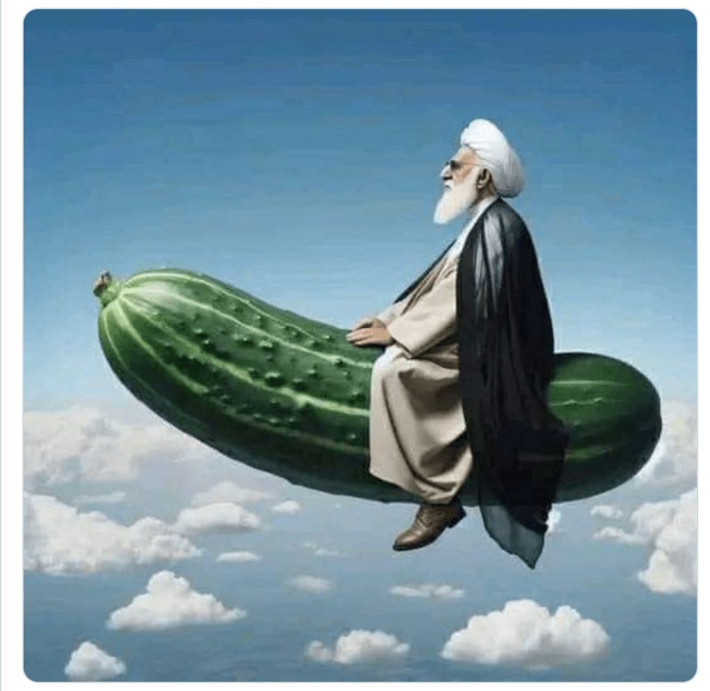 Der Spiegel schreibt unter dem Titel: «Arabische Welt spottet mit Gurkenbildern und Tanz Memes über Irans Angriff auf Israel.» Hier nur zwei Cartoons, mehr gibt es im Artikel.