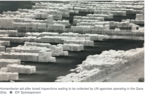 COGAT gab bekannt, dass im Laufe der beiden letzten Tage 553 LKWs mit Hilfsgütern und Lebensmitteln über Kerem Shalom und Nitzana in den Gazastreifen gelangt sind. Zusätzlich wurden 56 Lebensmittelpakete an Fallschirmen abgeworfen. Die IDF hat einen dritten Zugang in den Norden des Landes eröffnet, über den gestern weitere 126 LKWs hereinkamen. Eine zerstörte Wasserleitung in der Nähe von Khan Younis wurde repariert und wird in den kommenden Tagen wieder geöffnet. In Zusammenarbeit mit dem ‘World Food Program’ haben zwei Grossbäckereien ihren Betrieb wieder aufgenommen. Sie erhielten zusätzliche Treibstoff- und Grundstofflieferungen. Dort können täglich bis zu 650.000 Pita-Brote gebacken und verteilt werden. Immer noch stauen sich mehr als 450 LKW-Ladungen auf der palästinensischen Seite von Kerem Shalom und warten darauf, für den Weitertransport abgeholt zu werden.