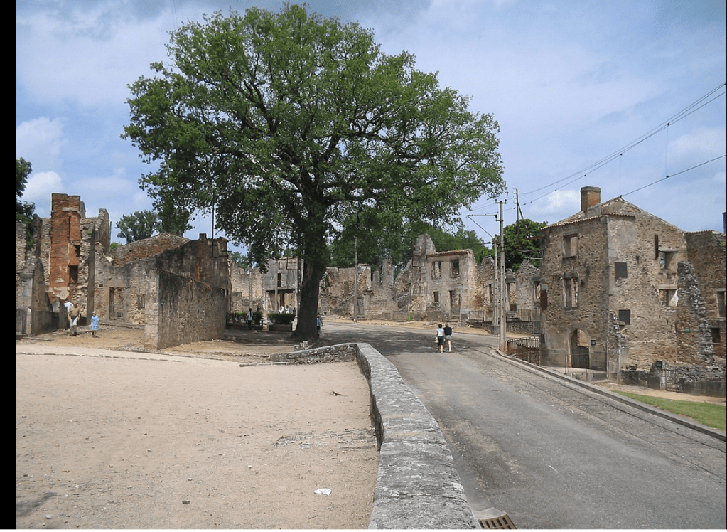 Onfray vergleicht die Massaker der Hamas vom 7. Oktober mit dem Massaker, das die Waffen-SS am 10. Juni 1944 an den 679 Bewohner des kleinen französischen Ortes Oradour-sur-Glarne verübte. 643 Menschen fielen den grausamen Massakern zum Opfer, nur 36 Menschen überlebten. Der Ort wurde völlig zerstört. Er ist heute unverändert ein Staatsdenkmal.