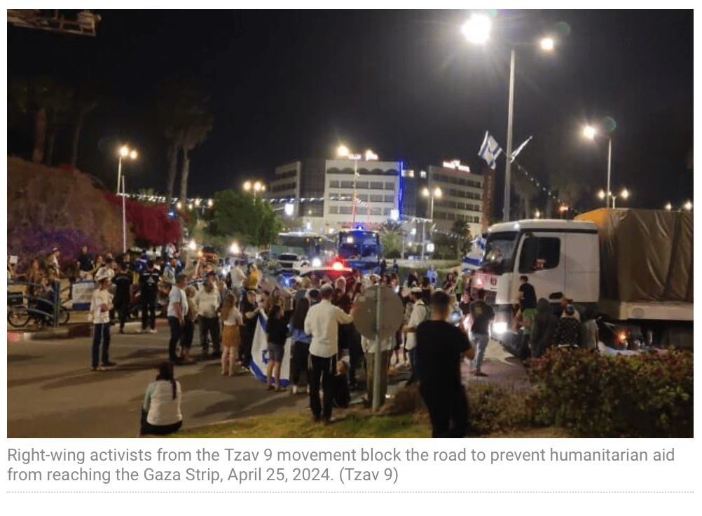 Die radikale Gruppe ‘Tzav 9’ bezieht sich in ihrem Namen auf den Befehl ‘Tzav 8’, mit dem Reservisten am 7. Oktober in den Dienst gerufen wurden. ‘Tzav 8’ entspricht nicht der allgemeinen Mobilmachung, sondern kann vom Verteidigungsministerium gezielt für bestimmte Gruppe, wie Reservisten ausserhalb der normalen Dienstpflicht, bestimmte Truppeneinheiten etc. eingesetzt werden. Es handelt sich aber auf jeden Fall immer um einen Notfall. ‘Tzav 9’, deren Mitglieder aus allen politischen Spektren stammen und der auch Familienmitglieder von Geiseln angehören, haben es sich zur Aufgabe gemacht, die Lieferung von Hilfsgütern und Lebensmitteln in den Gazastreifen zu blockieren. So haben sie vor Wochen die Zugangsstrassen nach Ashdod und den Warenübergang Kerem Shalom tagelang blockiert. In der Nacht auf heute haben sie mehrere Strassenkreuzungen im Süden des Landes blockiert, entluden einen der LKWs, öffneten die Mehlsäcke und kippten das Mehl und andere Lebensmittel auf die Strasse. Erst gegen 7 Uhr am Morgen wurden sie von Sicherheitskräften entfernt.
