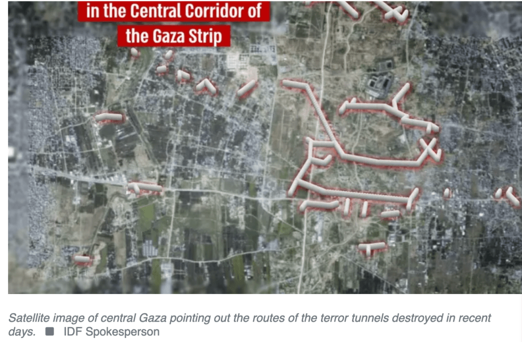 Der IDF ist es gelungen, mehr als 20 km Tunnelanlangen zu zerstören, die den nördlichen mit dem südlichen Teil des Gazastreifens unterirdisch miteinander verbinden. Der Streifen wird ‘oberirdisch’ vom sog. Netzarim Korridor getrennt, der vom Kibbutz Be’eri nach Westen bis an die Küste verläuft und der u.a. verhindern soll, dass sich Terroristen ungehindert zwischen den beiden Landesteilen bewegen. Über den Netzarim Korridor werden auch vermehrt Hilfstransporte in den nördlichen Gazastreifen geliefert. Die seit einigen Wochen allein in Gaza operierende Brigade wurde jetzt abgezogen, um sich gemeinsam mit anderen Truppenteilen auf die Bodenoffensive in Rafah vorzubereiten.
