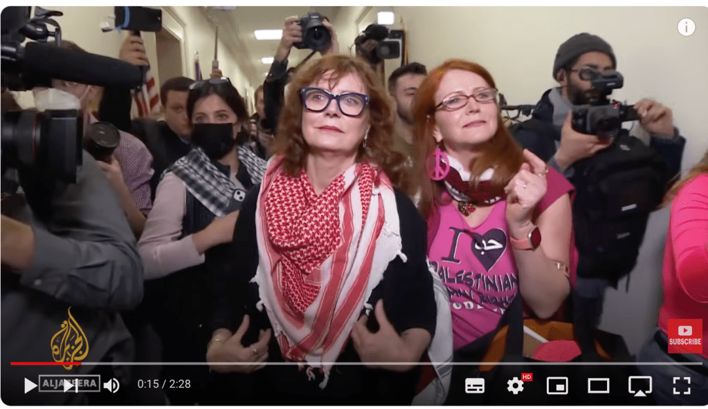 Susan Abigail Sarandon, Schauspielerin, 77, bestreitet, dass die Massaker vom 7. Oktober stattgefunden haben, und rechtfertigt die Ablehnung des Waffenstillstandes, wie ihn Israel vorgeschlagen hat. 2015 unterstützte sie den selbsthassenden Juden Bernie Sanders in seiner Wahlkampagne. Sie nannte ihn «mutig und besonnen in Krisenzeiten.» Gottseidank verlor er bereits die Vorwahlen.