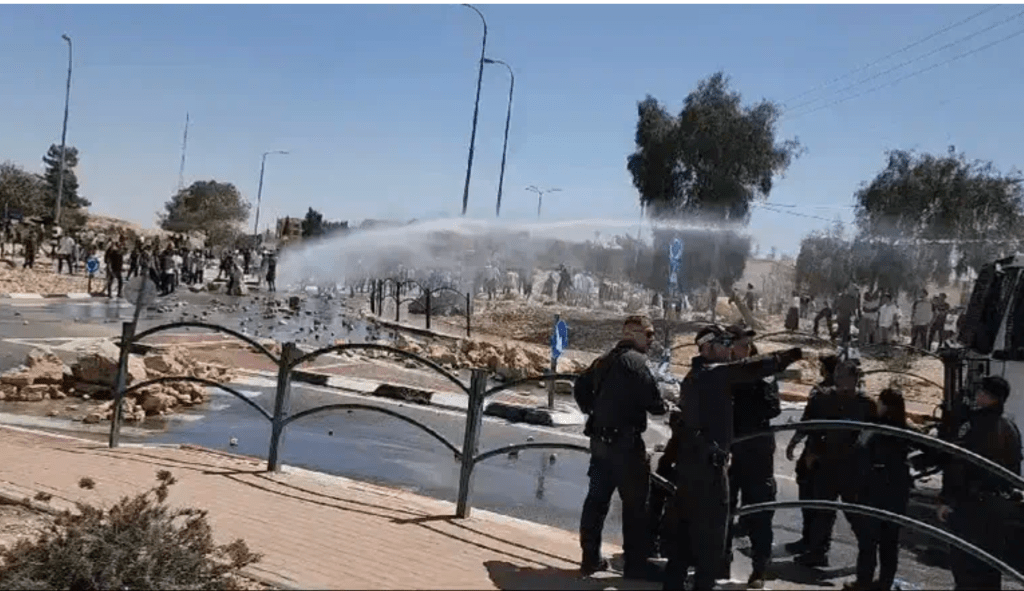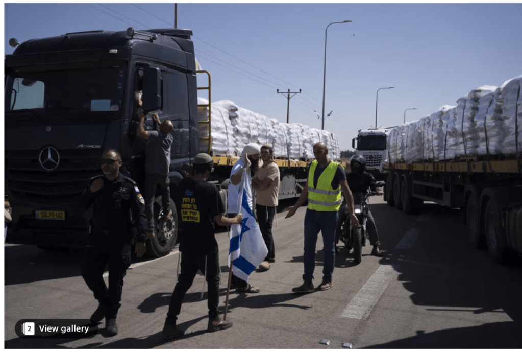 Aktivisten der Gruppe Tzav 9 gaben an, in der Nacht erneut die Weiterfahrt von LKWs mit Hilfsgütern in den Gazastreifen blockiert zu haben. Ihre Forderung ist, dass zuerst alle Geiseln befreit werden müssen, bevor humanitäre Hilfe oder Lebensmittel in den Gazastreifen gebracht werden. Nach eigenen Angaben waren etwa 500 Personen in der Nacht und am frühen Morgen daran beteiligt, die Zufahrtstrasse von Jordanien nach Eilat und nach Mitzpe Ramon zu blockieren. Die Strassen werden von jordanischen Transporten als Zufahrt zu den Kontrollpunkten entweder in Nitzana oder Kerem Shalom genutzt. 20 Aktivisten wurden festgenommen. Hunderte von Aktivisten blockierten bis nach 17 Uhr Ortszeit die Einfallstrasse nach Mitzpe Ramon. Die Polizei setzte Wasserwerfer ein, die jedoch nicht den gewünschten Erfolg erzielten.