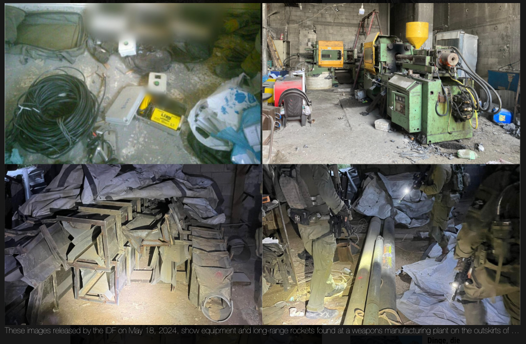 Die IDF konnte gestern im Gebiet von Jabaliya eine Waffenfabrik stürmen und zerstören. Teile der dort aufgefundenen Maschinen wurden von der IDF zur Untersuchung mitgenommen. In der Anlage wurden auch Langstrecken-Raketen hergestellt.