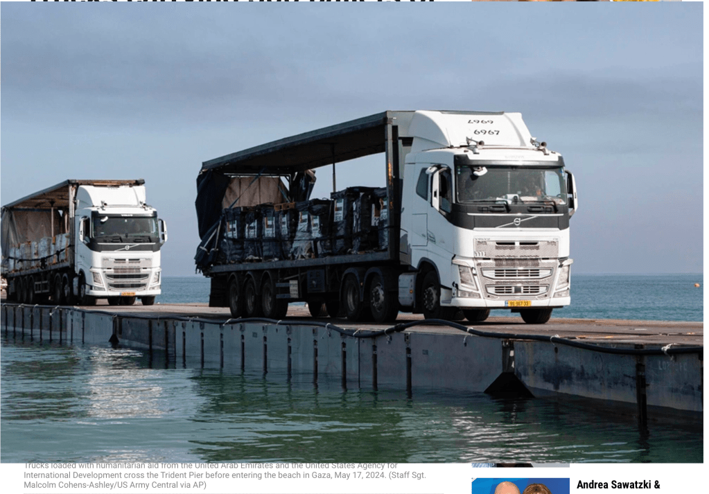 Die gestern als erste über den neuen temporären Landungssteg nach Gaza gefahren LKWs brachten mehr als 300 Paletten mit Hilfsgütern, die am Terminal der UNO für die weitere Verteilung in Gaza übergeben wurden. Hilfsorganisationen berichten, dass im südlichen Gazastreifen die Nahrungsmittel ausgehen, während das UN-Welternährungsprogramm sagt, dass im Norden des Gazastreifens bereits eine Hungersnot herrscht. Dass die palästinensische Hamas Terror-Organisation einen grossen Anteil an der prekären Lage hat, wird international ignoriert. Immer wieder blockieren sie Hilfslieferungen und leiten sie in ihre eigenen Vorratslager um. Der seit Tagen immer wieder erfolgte Beschuss des wichtigsten Warenübergangs, Kerem Shalom, trägt dazu bei, Hilfslieferungen zumindest zu verzögern, wenn nicht sogar ganz zu verhindern.