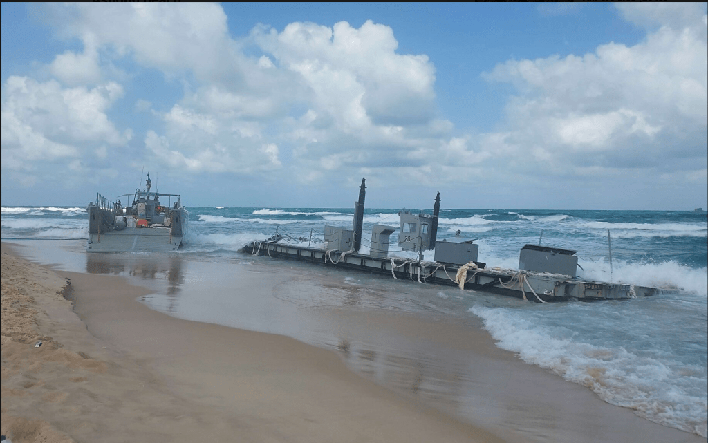Ein US-amerikanisches Schiff, das Hilfslieferungen für Gaza am Pier des Landungssteges ausladen wollte, löste sich heute Vormittag bei schwerer See von einem kleinen Schlepperboot und lief in der Nähe von Ashdod auf den Strand auf. Nachdem die Crew das Schiff nicht wieder selbstständig flott machen konnte, kam ein zweites Schiff zu Hilfe, das jedoch ebenfalls strandete.