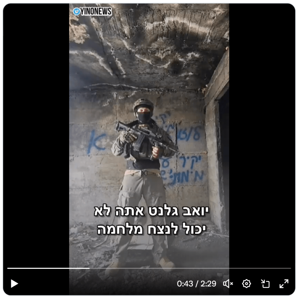 Ein maskierter Reservist teilt in einem Video, das in den sozialen Medien geteilt wurde, mit, dass die Reservisten den Befehlsgehorsam verweigern werden, falls VM Gallant die Regierung überzeugt, den Krieg zu beenden. Und damit das Kriegsziel, den, wie Netanyahu immer wieder betont «absoluten Sieg» aufgibt. Das Video ist, so der Text für den PM bestimmt. «Wir Reservisten haben nicht die Absicht, die Schlüssel einer palästinensischen Behörde zu übergeben. Wir haben nicht die Absicht, die Schlüssel zu Gaza irgendeiner Organisation zu geben – weder der Hamas noch der Fatah noch einer anderen arabischen Organisation. Wir Reservesoldaten stehen hinter Ihnen und wir wollen gewinnen.» Netanyahu hatte betont, nicht «von Hamastan nach Fatahstan wechseln zu wollen», während VM Gallant immer wieder festhielt, keiner Beteiligung Israels an einer Verwaltung in Gaza zuzustimmen. Der Reservist ist weiter zu hören: «Sie [Netanyahu] haben 100.000 Reservisten, die bereit sind, ihr Leben für das Volk Israel zu geben. Bereit zu sterben. Wir haben alles verloren, wir haben unser Familienleben verloren, wir haben unsere Lebensgrundlage verloren und wir können nirgendwo hingehen. Wir bleiben hier bis zum Ende. Bis zum Sieg. Yoav Gallant, Sie können den Krieg nicht gewinnen. Treten Sie zurück! Sie können diesen Krieg nicht gewinnen. Sie können uns nicht befehlen!»