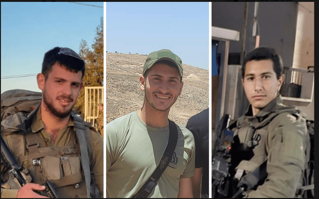 In der Nähe von Nablus wurden gestern zwei Soldaten Opfer eines Terroranschlages. Staff Sgt. Diego Shvisha Harsaj, 20, und Staff Sgt. Eliya Hilel, 20, s’’l, wurden von einem Auto erfasst, als sie dabei waren, stichprobenartige Kontrollen von palästinensischen Fahrzeugen vorzunehmen. Der Angriff ging so schnell vor sich, dass sie keine Chance hatten, den Angreifer unschädlich zu machen. Nach dem Angriff drehte das Fahrzeug um und fuhr zurück Richtung Nablus, wo sich der Fahrer den palästinensischen Behörden stellte. Im nördlichen Gazastreifen erlitt Staff Sgt. Yedidya Azugi, 21, s’’l, im Kampf mit palästinensischen Hamas-Terroristen tödliche Verletzungen.