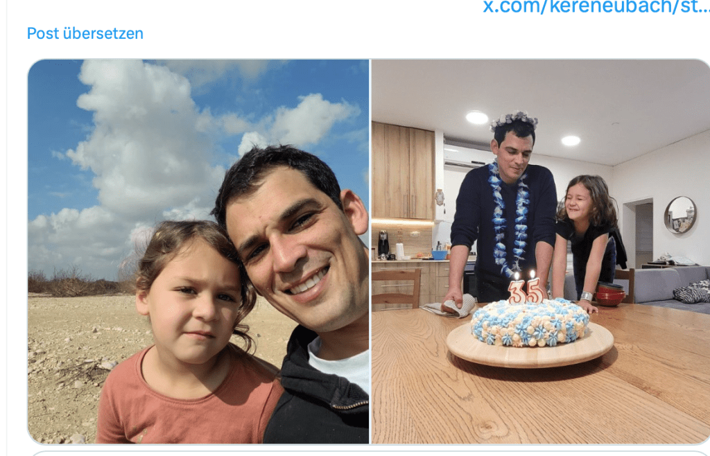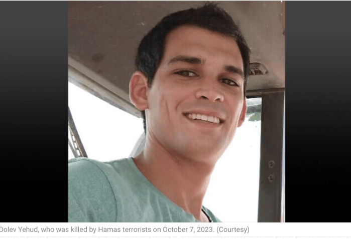 Der bisher als vermisst geltende Dolev Yehud, 35, s’’l, musste heute leider von der IDF für tot erklärt werden. Sein Tod wurde durch forensische Funde und Untersuchungen bestätigt. Offensichtlich wurde er am 7. Oktober von den Hamas-Schlächtern im Kibbutz Nir Oz ermordet. Vor seiner Ermordung gelang es ihm noch, einige Menschen vor den Massakern zu retten. Seine damals hochschwangere Frau und ihre drei Kinder überlebten im Schutzraum. Das vierte Kind wurde nach dem 7. Oktober geboren. Dolevs Schwester Arbel, 28, und ihr Verlobter Ariel Cunio werden immer noch in Gaza festgehalten.