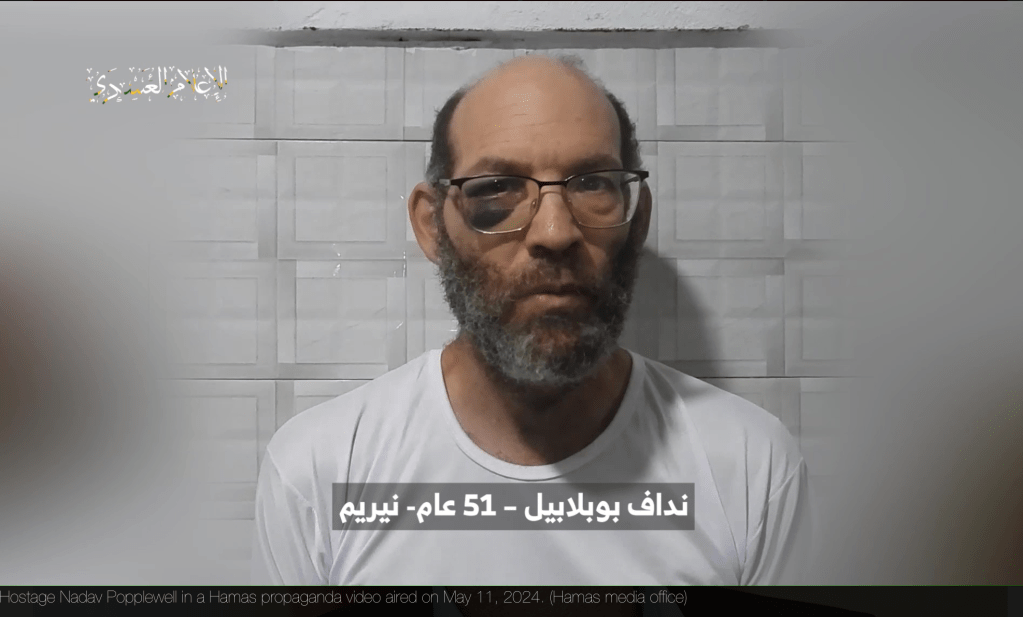 Der Kibbutz Nirim musste heute bekanntgeben, dass Nadav Popplewell, 51, s’’l, während seiner Geiselhaft in Gaza von den palästinensischen Hamas-Terroristen ermordet wurde. Seine sterblichen Überreste werden in Gaza festgehalten. Vor einigen Wochen war von der Hamas ein kurzer Video-Clip veröffentlicht worden, in dem er sich selbst als britisch-israelischen Doppelbürger vorstellte. Es gab keine Hinweise, von wann das Video stammte. Popplewell war am 7. Oktober gemeinsam mit seiner Mutter, Channah Peri, 79, in den Gazastreifen verschleppt worden, seine Mutter wurde im November freigelassen.