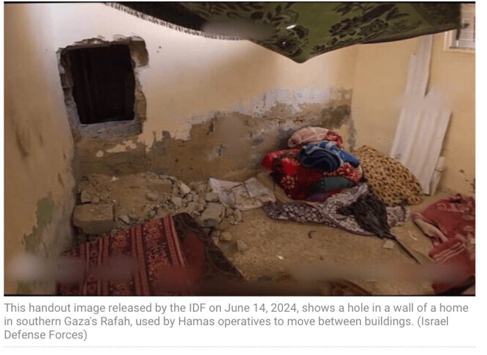 Als Teil ihrer taktischen Kriegsführung hat die Hamas in Mauern, die zwei Häuser miteinander verbinden, Löcher geschlagen. Auf diese Art wurde die unbeobachtete Bewegung zwischen Häusern viel einfacher und konnte, quasi unter den Augen der IDF unbeobachtet vor sich gehen. Vor allem in Rafah wurden zahlreiche Häuser mit diesen Löchern entdeckt.