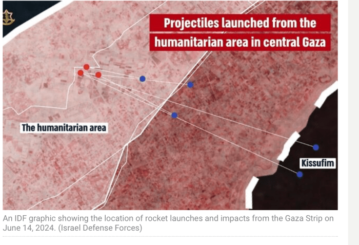 In der Nacht auf heute wurden erneut Raketen von der Hamas auf Israel abgeschossen. Die drei Abschussorte befanden sich mitten in der ‘humanitären Sicherheitszone’. Drei Raketen stürzten noch im Gazastreifen ab. Zwei weitere landeten in der Nähe des Kibbutz Kissufim auf freiem Feld. Während die Hamas fälschlicherweise behauptete, eine militärische Einrichtung beschossen zu haben, betonte die IDF: «Der Beschuss aus der Sicherheitszone ist ein weiterer Beweis für den zynischen Missbrauch ziviler Strukturen und für den Missbrauch von Zivilisten als menschliche Schutzschilde. Eine weitere Rakete wurde auf das Gebiet nahe der ägyptisch-israelischen Grenze abgeschossen. Schäden wurden nicht gemeldet.
