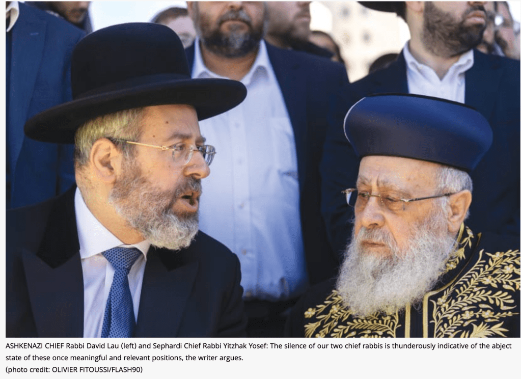 Das gibt es auch nur in Israel: Ein Rabbinatsgesetz. Dieses Gesetz gibt den orthodoxen und haredischen Parteien, i.e. Shas und United Tora Judaism die Macht, auf die Einstellung von kommunalen Rabbinern starken Einfluss zu nehmen. Orthodoxe und haredische Rabbiner sind Angestellte der lokalen Gemeinde und werden auch von dieser bezahlt. Im Prinzip dürfen nur sie Trauungen vollziehen und Beisetzungen leiten.