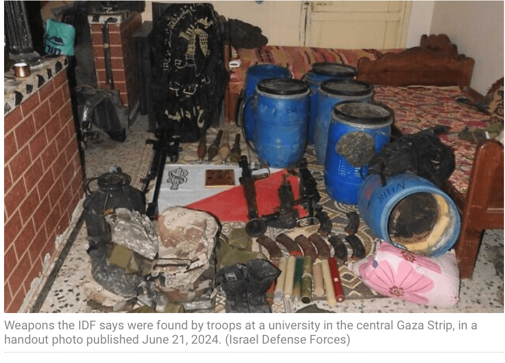 Die IDF hat die Stürmung der Universität Gaza beendet. Die Gebäude waren als Kommandozentrale der palästinensischen Terror-Organisation Hamas genutzt worden. Die im Gebäude versteckten Terroristen hatten mehrfach das Feuer auf die Soldaten eröffnet. Im Gebäude wurden zahlreiche Waffenlager entdeckt. Unter den Waffen befanden sich auch Plastik-Fässer, die mit Sprengstoff gefüllt waren. Zur Erinnerung: Assad hat seine eigene Bevölkerung mit Fassbomben terrorisiert.