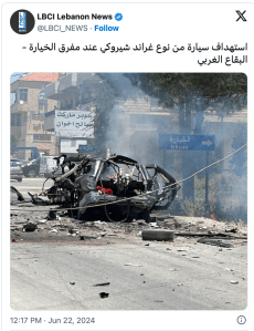 In Khira, etwa 40 km nördlich der libanesischen Grenze, führte die IDF einen gezielten Angriff auf einen PKW durch. Auch zu diesem Vorfall gab es noch keine Details. Mittlerweile wurde veröffentlicht, dass bei dem gezielten Drohnen-Anschlag Ayman Ghatma, ein hochrangiges Mitglied von Hamas und der Terror-Gruppe al-Jama’a al-Islamiyya, neutralisiert werden konnte. Seine Aufgabe war es, beide Gruppen im Libanon mit Waffen zu versorgen. Die Terrorgruppe Gruppe al-Jama’a al-Islamiyya ist ein Ableger der Muslim Bruderschaft im Libanon, die direkt vom Iran finanziert wird. Nota bene: die Muslim Bruderschaft unterhält Büros in westlichen Staaten. Sie tarnen sich durch Integration in Moscheen.