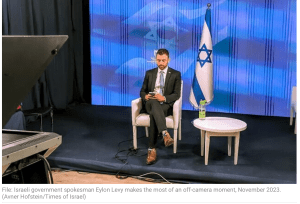 In welchen Kontext Eylon Levy, ehemaliger englischsprachiger Sprecher im Büro des PM, das stellt, kann man hier sehen und hören.