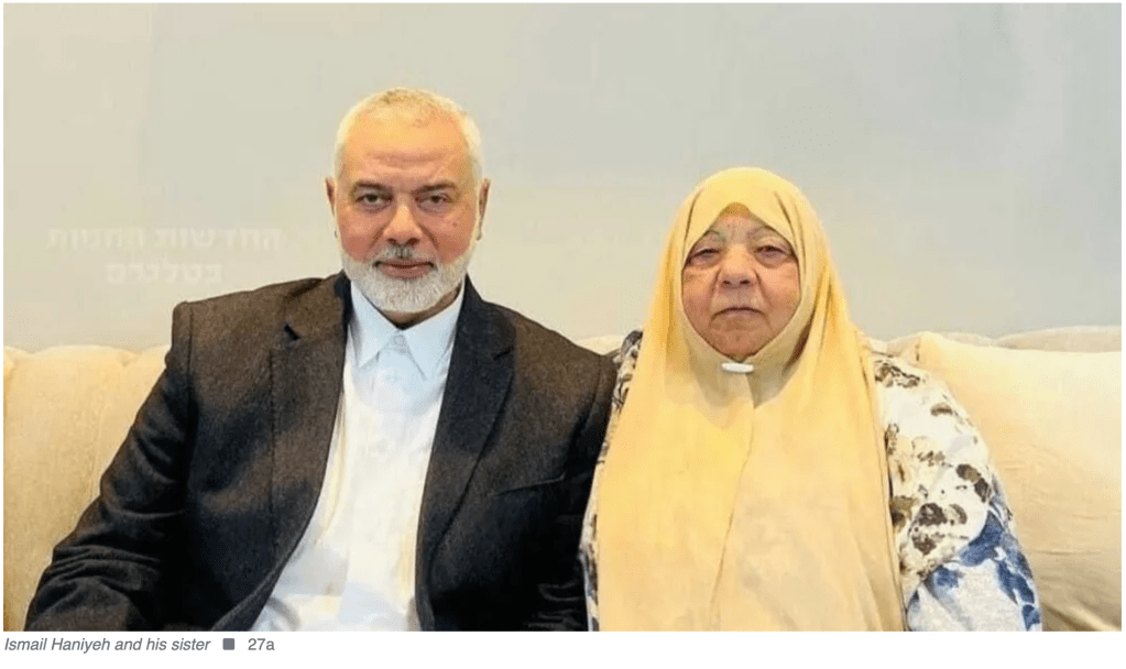 Die Hamas gab bekannt, dass die Schwester von Hamas-Anführer Ismail Haniyeh bei einem Angriff auf das Shati Camp getötet wurde. IDF hatte zuvor bekanntgegeben, zwei Gebäude, die von der Hamas genutzt wurden, angegriffen und zerstört zu haben. Bei den dort getöteten Terroristen befanden sich auch solche, die massgeblich an den Massakern vom 7. Oktober beteiligt waren. Die Hamas gab an, dass in Shati mindestens zehn Personen, darunter auch die Schwester Haniyehs getötet wurden. Bei einem zweiten Angriff in Daraj, Gaza Stadt, auf zwei Schulen, eine davon eine UNRWA-Schule, wurden angeblich acht Mitglieder einer Familie getötet.