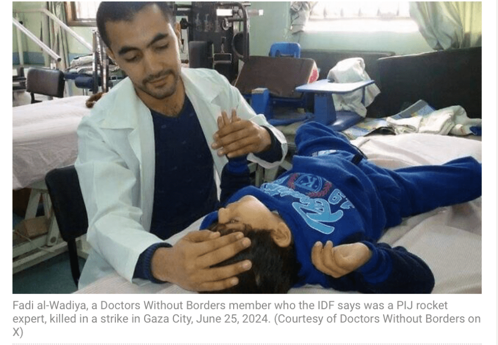 Die IDF veröffentlichte heute Bilder, die den Raketenexperten des Palästinensisch-Islamischen-Djihad, Fadi al-Wadiya, in der Uniform der Terror-Gruppe zeigt. Mitarbeiter von ‘Ärzte ohne Grenzen’ (MSF) haben ihn als Kollegen bezeichnet, jedoch behauptet, er sei kein Terrorist. MSF gab heute bekannt, al-Waadiya sei gestern bei einem Drohnen-Angriff getötet worden, als er mit dem Fahrrad auf dem Weg zu seiner Arbeitsstelle war. Laut Informationen der IDF war er nicht nur Experte für Raketen und an deren Entwicklung beteiligt, sondern auch Fachmann für Elektronik und Chemie. 2018 habe er sich MSF als Arzt und Physiotherapeut angeschlossen und versucht, Gaza Richtung Iran zu verlassen, um dort gemeinsam mit zwei weiteren Terroristen eine Ausbildung zu absolvieren.