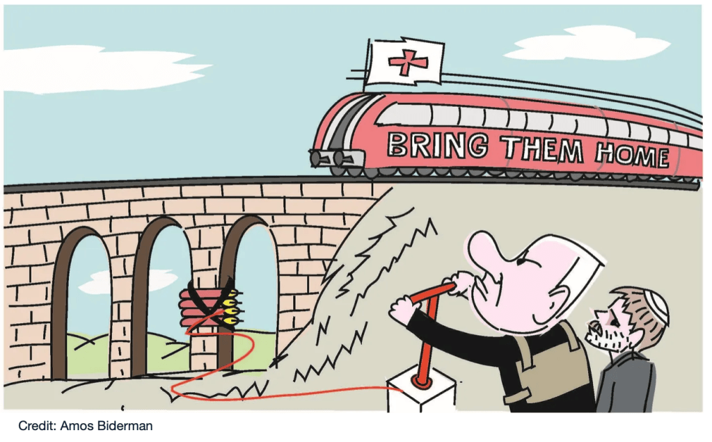 Yossi Verter schreibt in seiner heutigen Kolumne im Ha’aretz «Das Wort „Schamlosigkeit“ wird der Unverfrorenheit, dem Zynismus und der Härte des Herzens von Premierminister Benjamin Netanyahu nicht einmal ansatzweise gerecht. Aber dieses Mal war Netanyahu vielleicht aufgrund der Hybris, die ihn erneut ergriffen hatte, oder vielleicht aufgrund seiner bevorstehenden Siegesreise in die USA, einschliesslich eines Treffens mit dem angeschlagenen und gebeutelten Präsidenten, nicht vorsichtig genug. (…) Der unangenehme Beigeschmack, der von dem jüngsten Manöver eines gescheiterten Premierministers ausgeht – das Massaker und die anhaltende Geiselhaft von 120 Geiseln – ist jetzt überall zu spüren.» (sic!)