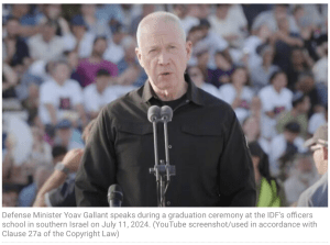 Netanyahu sprach bei der gleichen Zeremonie: «Wir sind entschlossen, den Sieg zu erringen und unsre Ziele zu erreichen: die Beseitigung der Hamas-Herrschaft im Gazastreifen, die Rückkehr aller unserer Geiseln nach Hause, die Vereitelung jeglicher zukünftiger Bedrohung Israels aus dem Gazastreifen und die Rückkehr vertriebener Israelis in ihre Häuser im Süden und Norden. Es gibt diejenigen, die fragen, wie lange die Kampagne noch andauern wird. Ich sage dazu: Bis zum Sieg. Bis zum Sieg, auch wenn es Zeit braucht.» Noch vor wenigen Monaten hatte er behauptet, nur mehr «einen Schritt vom Sieg über die Hamas entfernt zu sein.» Während man Gallant Beifall spendete, wurde Netanjahu ausgebuht.