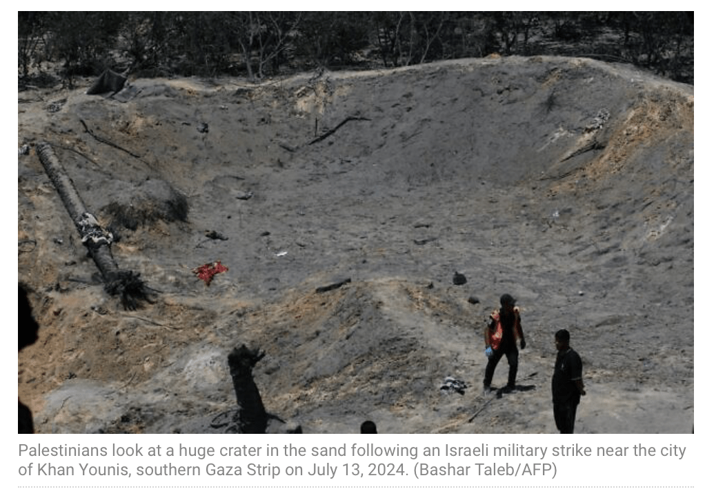 Falls der Schlag, den die IDF während der frühen Morgenstunden ausgeführt hat, tatsächlich gelungen ist, dann muss das als der bisher wichtigste Erfolg im Kampf gegen die palästinensische Terror-Organisation Hamas gewertet werden. Muhammad Deif, zweiter Mann nach Yahya Sinwar und Rafa’a Salameh, Kommandant der Khan Younis Brigade waren das Ziel der von langer Hand vorbereiteten Operation. Zum Zeitpunkt des Angriffes befanden sie sich in einem niedrigen Gebäude zwischen al-Mawasi und Khan Younis. Das Gelände, auf dem das Gebäude steht, ist weiträumig eingezäunt. Es ist sicher, dass sie sich nicht innerhalb des Zeltlagers der evakuierten Zivilisten aufhielten. Die beiden hochrangigen Hamas-Führer waren umgeben von einigen Dutzend weiterer Terroristen. Der Anschlag wurde präzise durchgeführt und hinterliess einen tiefen Krater.