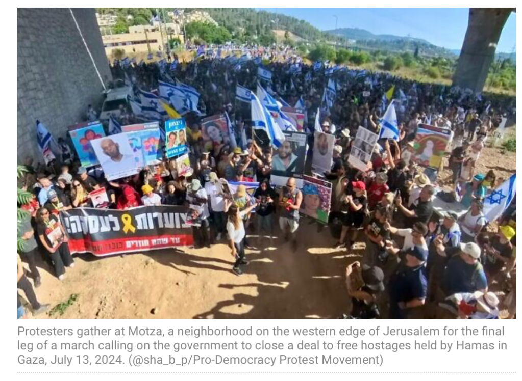 Der Demonstrationszug der Familien und Freunde der noch in Gaza befindliche Geiseln hat Jerusalem erreicht. Oppositionsführer Yair Lapid besuchte sie an ihrem Sammelpunkt. Am Abend wird die Gruppe sich vor dem Haus der Netanyahus an der ‘Aza Strasse’ und dort zeitgleich mit anderen Demonstrationen im ganzen Land den Abschluss der Vereinbarungen zur Freilassung der Geiseln fordern.