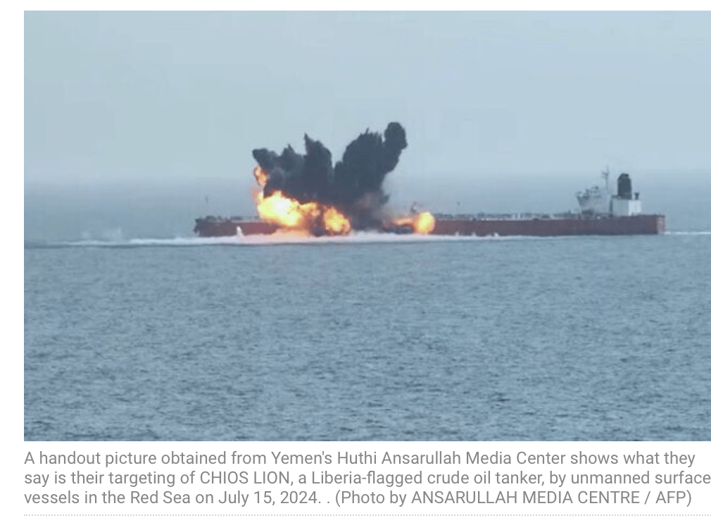 Der Öltanker ‘Chios Lion’, der unter liberianischer Flagge segelt, erhielt nach einem Beschuss durch Houthi Terroristen einen Direktschlag. Obwohl der Schaden am Schiff nicht als besonders gross eingestuft wird, kann eine Ölspur nicht ausgeschlossen werden. Der Frachter wendete nach dem Beschuss, um im nächsten Hafen zu untersuchen, ob irreparable Schäden entstanden sind.