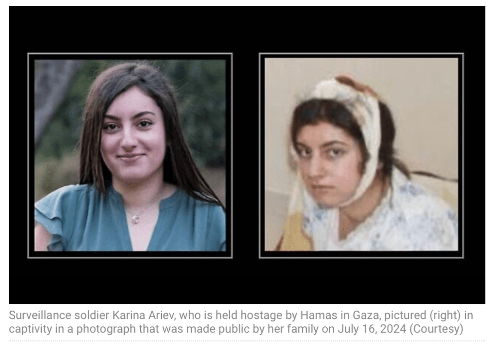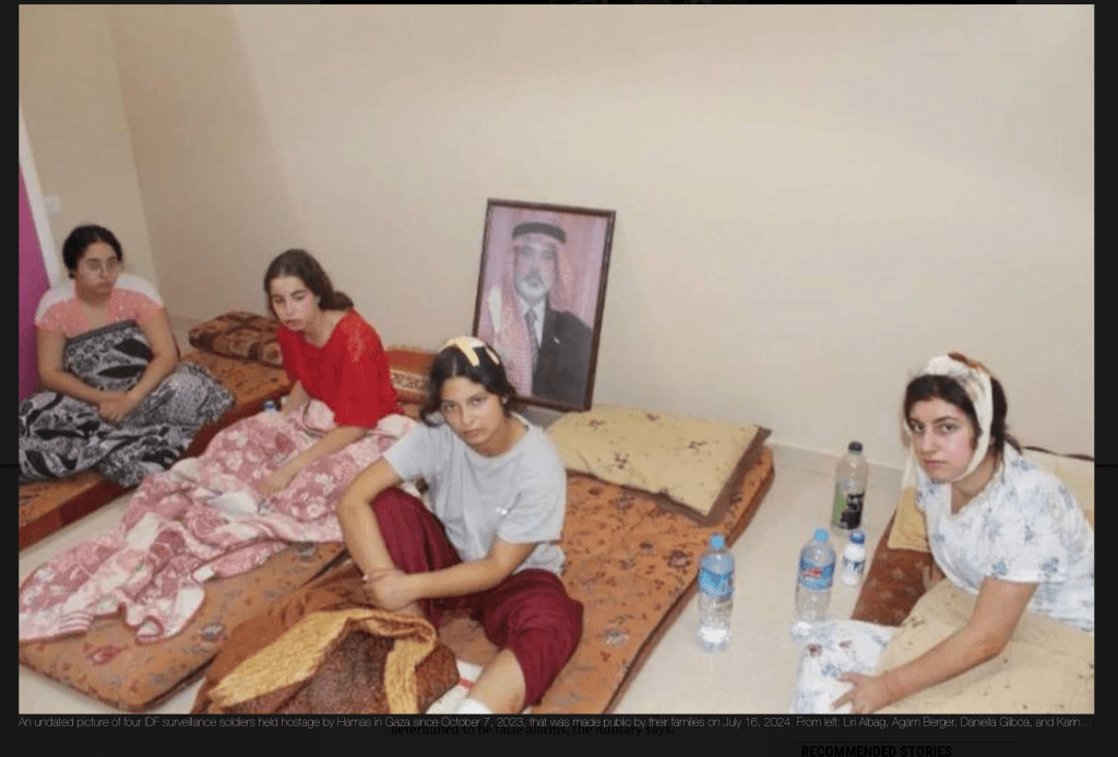 Die Familien von fünf Soldatinnen, die von der palästinensischen Terror-Organisation Hamas von ihrem Beobachtungsposten in Nahal Oz in den Gazastreifen verschleppt wurden, haben neue Bilder zur Veröffentlichung freigegeben. Sie wurden in den ersten Tagen ihrer Gefangenschaft aufgenommen, aber erst vor 1 ½ Monaten den Familien zugestellt. Die Bilder zeigen Liri Albag, Karina Ariev, Agam Berger, Daniella Gilboa, und Naama Levy. Zwei von ihnen haben offensichtlich Verletzungen am Kopf, eine Dritte hat ein völlig verschwollenes Gesicht und ein schwarzes Auge. Die Familien erhielten die Bilder bereits vor einigen Monaten.