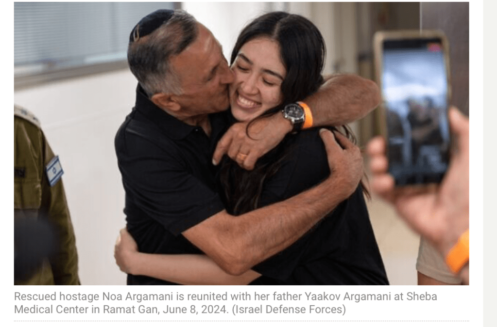 Netanyahu will auf seiner ab dem kommenden Montag stattfindenden Reise in die USA zeigen, welch liebevoll sorgender Landesvater er ist. Geplant ist, dass Noa Argamani mit ihrem Vater dabei sein wird. Sehr schnell meldeten sich Stimmen, die ihr dringend abrieten, an dieser Reise teilzunehmen. Maayan Sherman, die Mutter des gefallenen Soldaten Ron, s’’l, schrieb im Facebook: «Geliebte Noa, er missbraucht dich. Andere werden dafür mit ihrem Leben zahlen müssen. Erkläre das bitte deinem Vater. Flieg nicht als Dekoration mit!» Ifat Kalderon, Verwandter des noch in Gaza festgehaltenen Ofer, schreibt weiterhin: «Wir müssen unserer geliebten Noa erklären, dass er sie missbraucht. Sie wurde zuerst von der Hamas gekidnappt und nun ein zweites Mal durch ihn.» Mit dabei sollen weitere Familienangehörige sein, u.a. die Mutter von Noas Partner Avinatan Or.