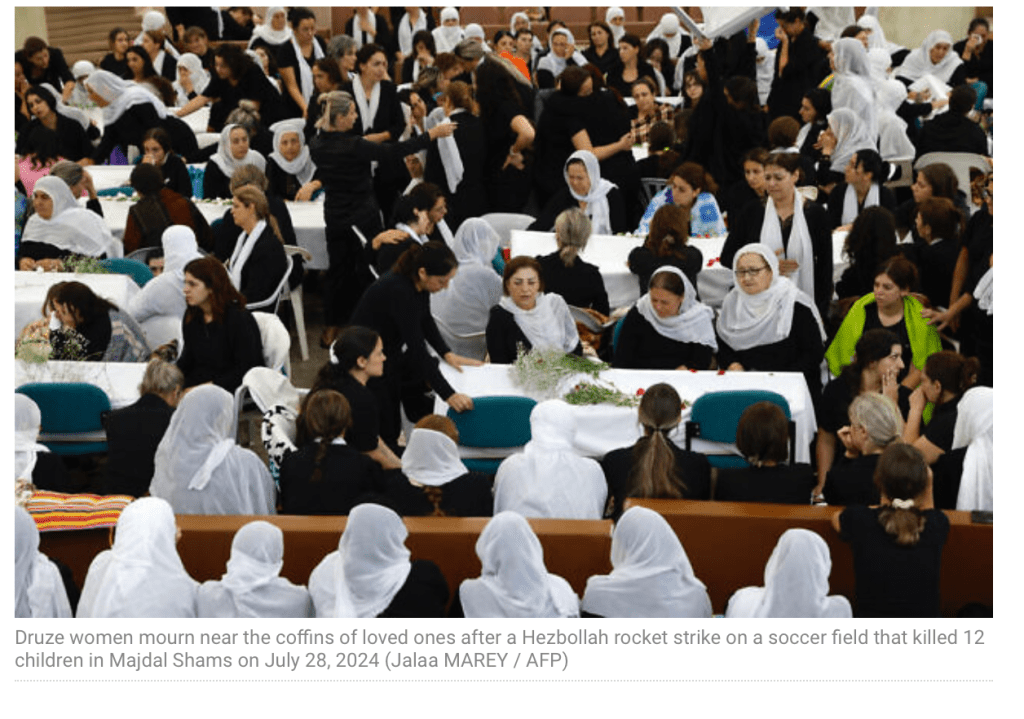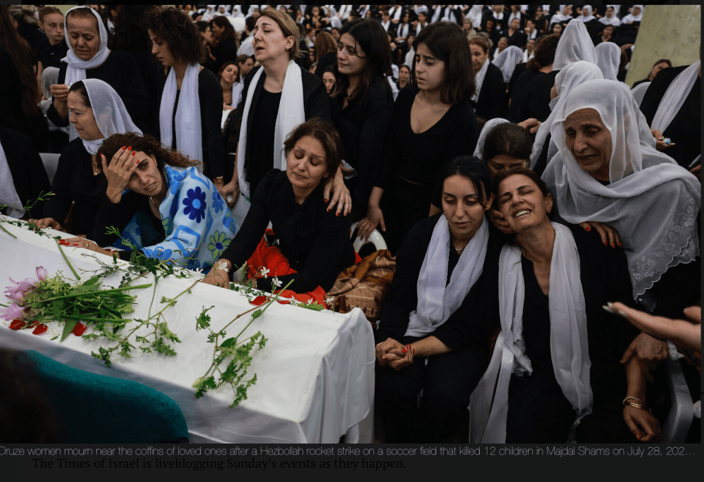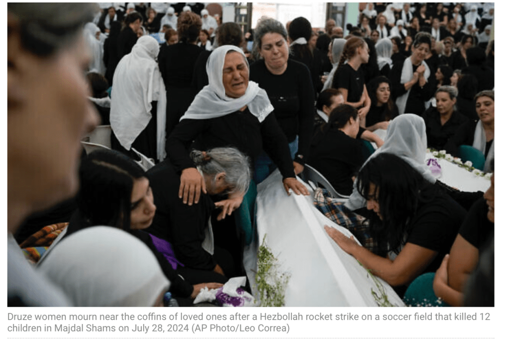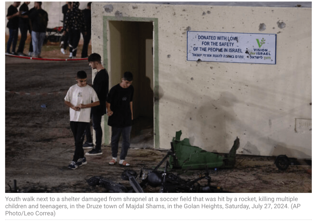 Es war eine von etwa 40 Raketen, die in einer heftigen Salve von der Hisbollah auf Israel abgeschossen wurde. Ersthelfer, die sofort aus den umliegenden Orten nach Majdal Shams kamen, berichteten später von grauenhaften Bildern, die sich ihnen boten.