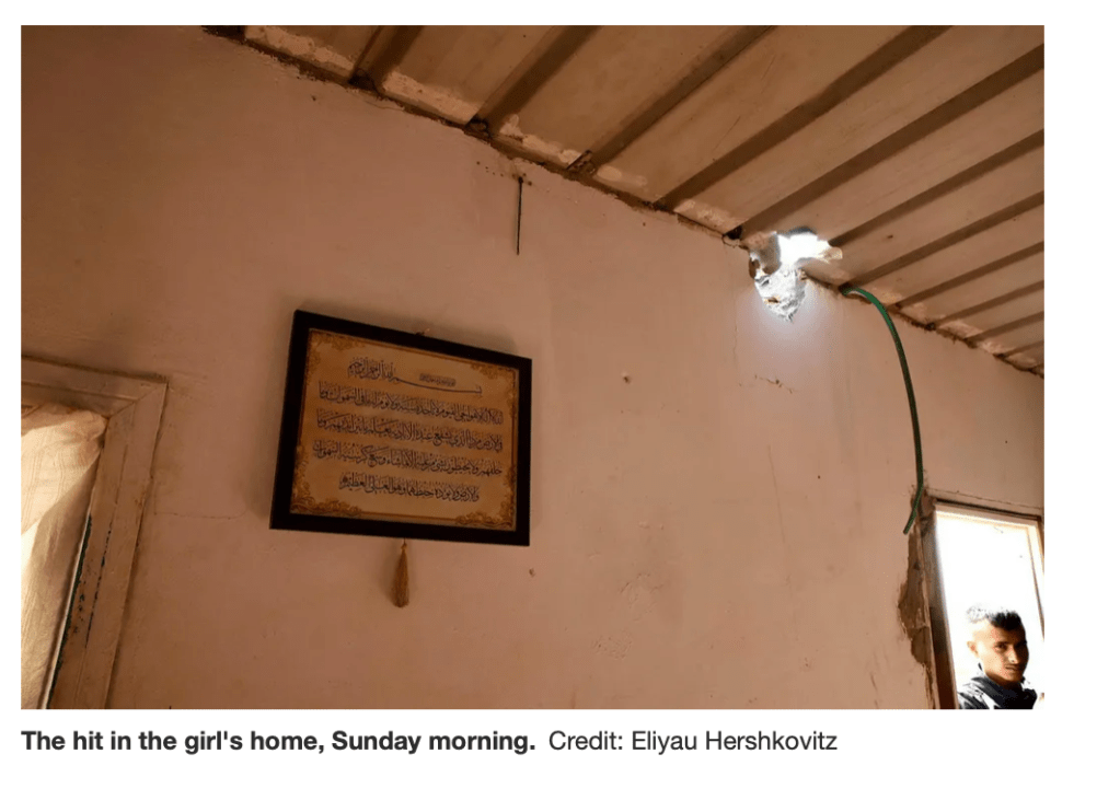 Beim Angriff des Irans auf Israel am 14. April hatte ein Schrapnell einer abgefangenen und zerstörten Rakete das Dach ihres Elternhauses genau im Bereich über ihrem Bett durchschlagen und sie schwer am Kopf verletzt.