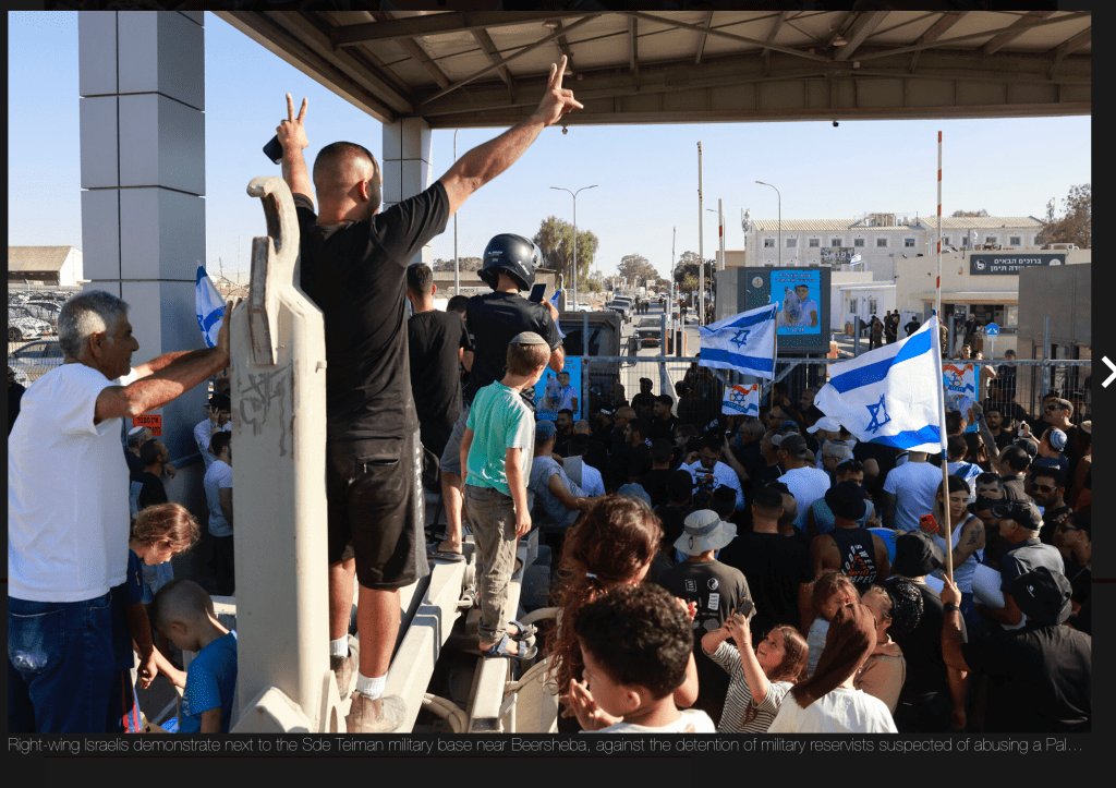 Der rechtsextrem-nationalistisch Smotrich verteidigte die Demonstrationen auf den Militärstützpunkten, nachdem Reservisten wegen angeblichen Folterungen eines palästinensischen Gefangenen verhaftet wurden. Mit einem Funken von Restverstand warnte er jedoch davor, gewaltsam in die Stützpunkte einzubrechen. «Im Gegensatz zu den heuchlerischen Linken, die das Gesetz gebrochen, den Wehrdienst verweigert und den Staat in Brand gesteckt haben, was sie anderthalb Jahre lang unter der Schirmherrschaft der Generalstaatsanwältin Gali Baharv-Miara getan haben, haben wir eine Verantwortung gegenüber dem Staat. Deshalb: Ich rufe alle auf, das Gesetz und die Integrität der Armee und der Nation zu wahren. Brecht nicht in Stützpunkte ein und kommt nicht mit unseren Brüdern, den Soldaten und Polizisten, aneinander und haltet euch an die Grenzen des Protests.»