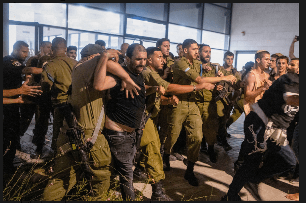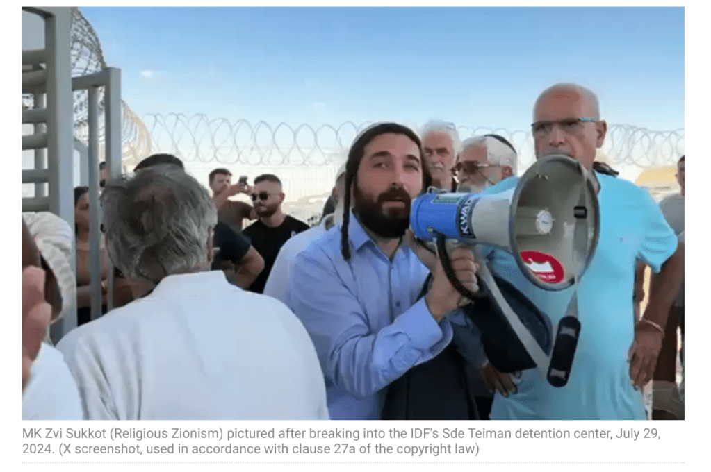 Daraufhin randalierten rechtsextreme Politiker und rechts-nationale Aktivisten zunächst vor der IDF-Basis Sde Teiman in der Nähe von Be’er Sheva. Andere, darunter auch Kulturminister Amichay Eliyahu, Otzmah Yehudit, MK Zvi Sukkot, Religious Zionism, MK Yitzhak Kroizer und MK Limor Son Har-Melech von der Otzma Yehudit-Partei, sowie die Abgeordneten Nissim Vaturi und MK Tally Gotliv, beide Likud, brachen gewaltsam in die Basis ein.