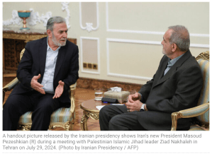 Der Führer des Palästinensisch Islamischen Jihad, Ziad Nakhaleh, befand sich zur Zeit des israelischen Angriffs im gleichen Gebäude, aber auf einem anderen Stockwerk, als Ismail Haniyeh. Er überlebte den Angriff unbeschadet. Obwohl seine Organisation die zweitgrösste Terror-Organisation in Gaza ist und an den Massakern am 7. Oktober teilnahm, war er nicht Ziel des Angriffs.