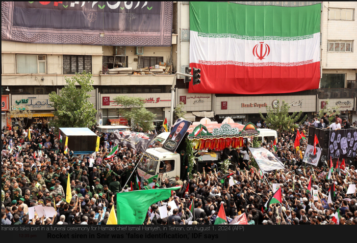 Bei der ersten von drei Trauerfeierlichkeiten für Ismail Haniyeh und seinen mit ihm getöteten Bodyguard werden immer wieder Rufe nach Rache laut. «Ismail Haniyehs Slogan „Wir werden Israel nicht anerkennen“ wird ein unsterblicher Slogan bleiben und wir werden Israel verfolgen, bis es aus dem Land Palästina vertrieben ist.» Bei derzeit 37° wird die jubelnde Menge, die die Strassen säumt, sich über die Wassernebel freuen, die auf sie niederrieseln! Mittlerweile wurde bekannt, dass der Bodyguard, Wasim Abu Shaaban, selbst bei zahlreichen Terror-Anschlägen auf Israel zwischen 2009 und 2014 aktiv war, bevor er 2019 zum Bodyguard von Haniyeh ernannt wurde und ihn auf allen Reisen begleitete.