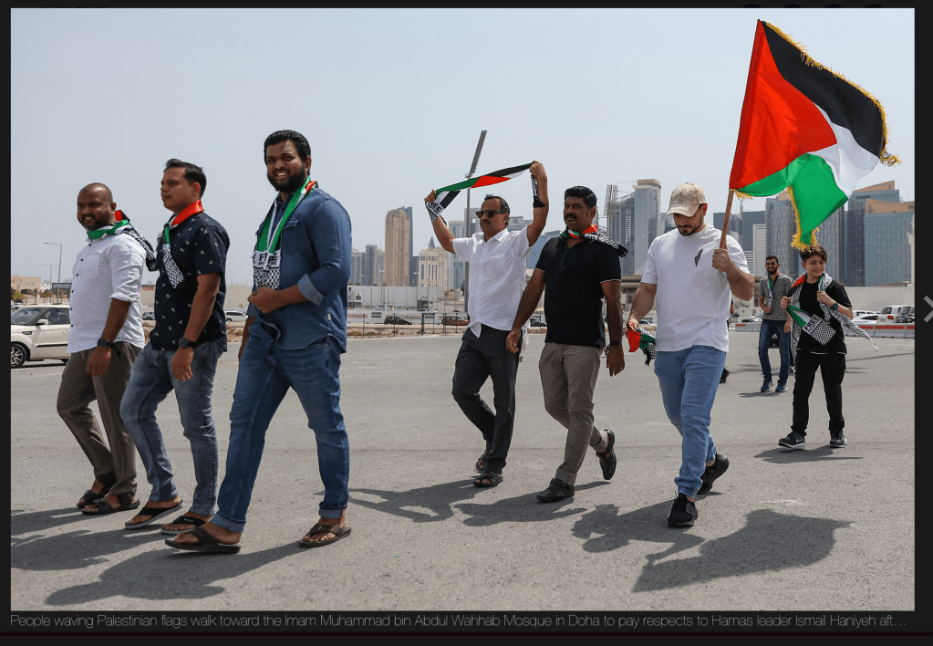 Der türkische Aussenminister, Hakan Fidan, der anlässlich der Begräbnisfeierlichkeiten für Ismail Haniyeh nach Doha gereist ist, traf sich dort mit Khaled Mashaal. Mashaal, bisher die Nummer zwei der Hamas im Ausland, wird wahrscheinlich die Nachfolge von Haniyeh antreten. Zwei der noch lebenden Söhne Haniyehs, Abdusselam und Hemmam, sind ebenfalls in Doha anwesend.