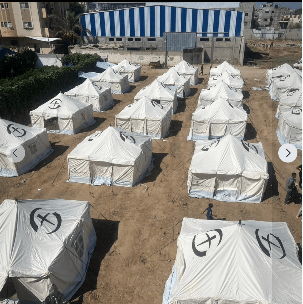 Gestern fuhren 15 LKW mit 4.500 einzeln verpackten Zelten auf die gazanische Seite vom Warenübergang Kerem Shalom, von wo aus sie an verschiedene Hilfsorganisationen verteilt wurden. Die Zelte sind auf dem Dach deutlich markiert, um zu vermeiden, dass sie absichtlich beschossen werden.