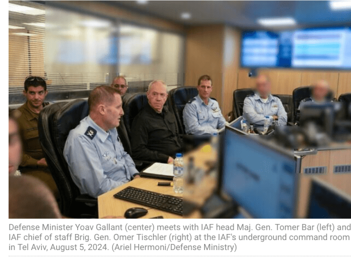 Beim Besuch der unterirdischen Einsatzzentrale der Air Force in Tel Aviv hat VM Yoav Gallant betont, dass «sich unsere Feinde jeden Schritt gut überlegen werden, nachdem Sie im letzten Jahr Ihre Schlagkräftigkeit bewiesen haben. Trotzdem müssen wir für alles vorbereitet sein.»