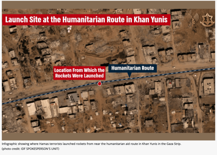 Auf dem X-Account des IDF-Sprechers Nadav Shoshani kann man in seinem noch nie so klar gefilmten Video zuschauen, wie Terroristen der palästinensischen Terror-Organisation Hamas zwei Raketen vorbereiten, auf Zentral-Israel abgeschossen zu werden. Das Video findet man hier, es ist wirklich sehenswert. Nicht nur, dass die Terroristen Zivilkleidung trugen, womit sie dem humanitären Völkerrecht widersprechen. Mehr noch, sie schiessen die Raketen mitten aus einem als humanitären Schutzgebiet definierten Gebiet in Khan Younis. Was natürlich ebenfalls dem humanitären Völkerrecht widerspricht, nach dem man keine Zivilisten als menschliche Schutzschilde missbrauchen darf.